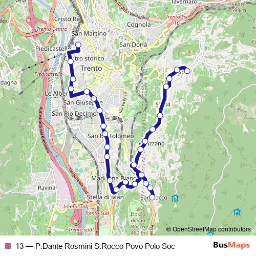Bus 13 - P.Dante Rosmini S.Rocco Povo Polo Soc in Trento: Stops & Timetable