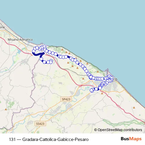 The first stop of the 131 bus route is Paolo e Francesca (Park Bus) and the last stop is Dei Canonici. 131 (Gradara-Cattolica-Gabicce-Pesaro) is operational during tutti i giorni.