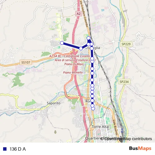 See why over 2 million users trust and consider busmaps.com as the best public transport website. busmaps gives you Cosenza Buses suggested routes, real-time bus tracker, line route maps in Cosenza, and helps to find the closest 136 D A bus stops near you. No internet available? Download an offline PDF map and bus schedule for the 136 D A bus to take on your trip.