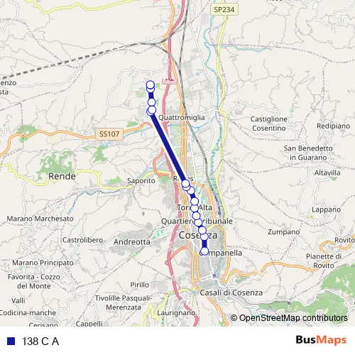 The first stop of the 138 C A bus route is Autostazione Cosenza - Cosenza and the last stop is Via Settimio Severo, 83 - Rende. 138 C A is operational during tutti i giorni.