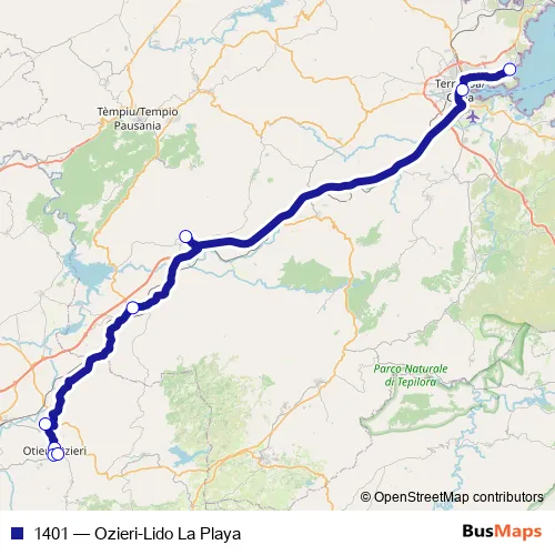 Bus 1401 - Ozieri-Lido La Playa: Full Schedule in Olbia