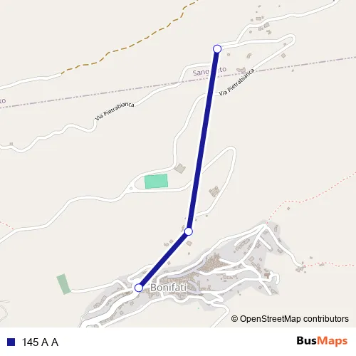 The first stop of the 145 A A bus route is Via Vittorio Alfieri, 2 - Bonifati and the last stop is Bivio Bonifati/Sangineto - Sangineto. 145 A A is operational during tutti i giorni.