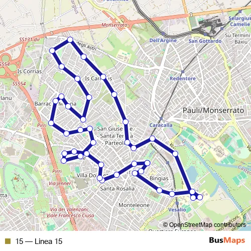 See why over 2 million users trust and consider busmaps.com as the best public transport website. busmaps gives you Cagliari Buses suggested routes, real-time bus tracker, line route maps in Cagliari, and helps to find the closest 15 bus stops near you. No internet available? Download an offline PDF map and bus schedule for the 15 bus to take on your trip.