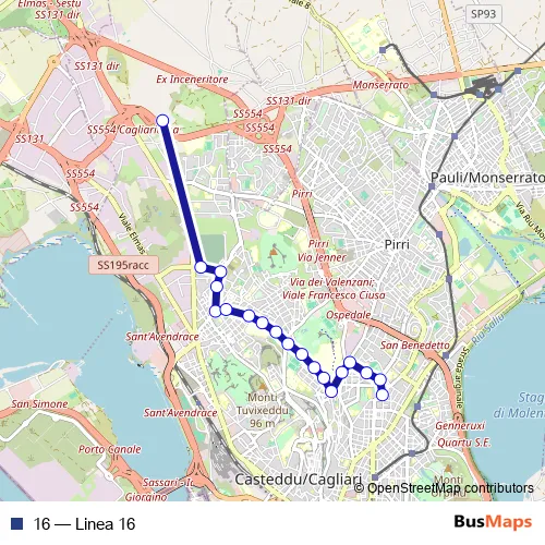 See why over 2 million users trust and consider busmaps.com as the best public transport website. busmaps gives you Cagliari Buses suggested routes, real-time bus tracker, line route maps in Cagliari, and helps to find the closest 16 bus stops near you. No internet available? Download an offline PDF map and bus schedule for the 16 bus to take on your trip.