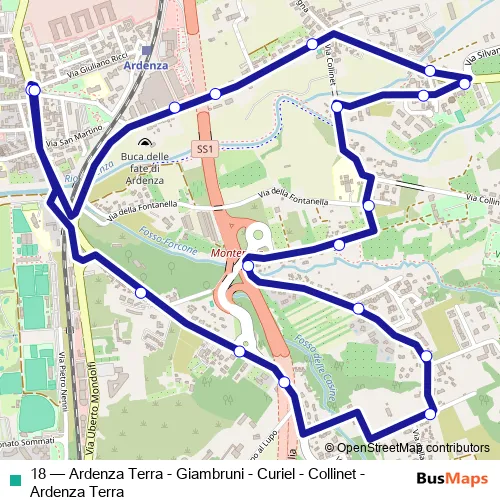 The first stop of the 18 bus route is Ardenza Terra and the last stop is Ardenza Terra (Arrivo). 18 (Ardenza Terra - Giambruni - Curiel - Collinet - Ardenza Terra) is operational during tutti i giorni.