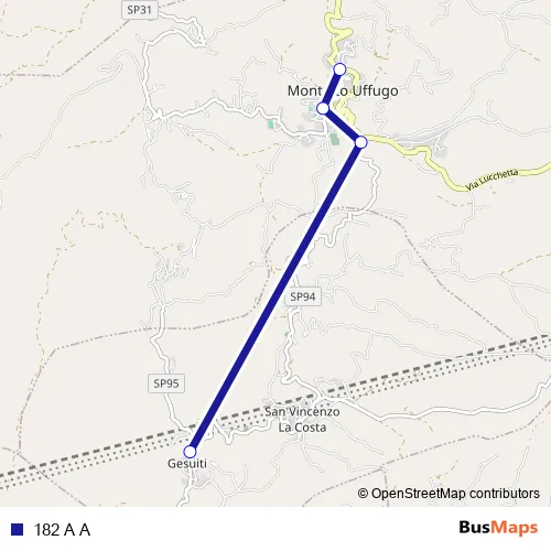 The first stop of the 182 A A bus route is Via R. Leoncavallo, 2 - Montalto Uffugo and the last stop is Corso V. Emanuele, 4 - San Vincenzo La Costa. 182 A A is operational during tutti i giorni.