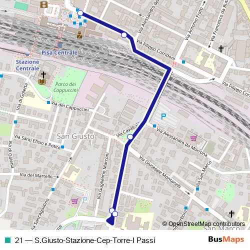 Bus 21 - S.Giusto-Stazione-Cep-Torre-I Passi Schedule in Pisa