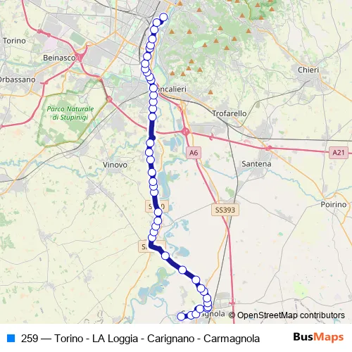 Click here to view the nearest 259 - Torino - LA Loggia - Carignano - Carmagnola bus stop.