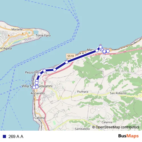 The first stop of the 269 A A bus route is Via Ieracari, 29 - Scilla and the last stop is Largo Salvatore Delfino, 1 - Villa San Giovanni. 269 A A is operational during tutti i giorni.