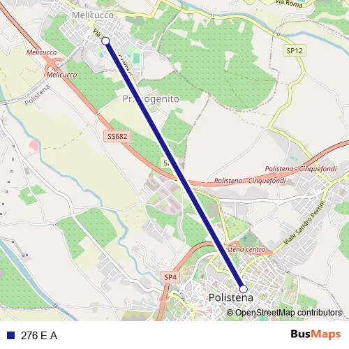 The first stop of the 276 E A bus route is Viale Italia, 56 - Polistena and the last stop is Via Antonio Gramsci, 93 - Melicucco. 276 E A is operational during tutti i giorni.