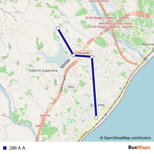 See why over 2 million users trust and consider busmaps.com as the best public transport website. busmaps gives you Siderno Buses suggested routes, real-time bus tracker, line route maps in Siderno, and helps to find the closest 286 A A bus stops near you. No internet available? Download an offline PDF map and bus schedule for the 286 A A bus to take on your trip.