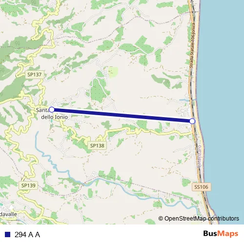 See why over 2 million users trust and consider busmaps.com as the best public transport website. busmaps gives you Santa Caterina dello Ionio Marina Buses suggested routes, real-time bus tracker, line route maps in Santa Caterina dello Ionio Marina, and helps to find the closest 294 A A bus stops near you. No internet available? Download an offline PDF map and bus schedule for the 294 A A bus to take on your trip.