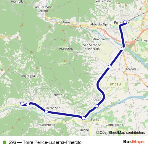 Click here to view the nearest 296 - Torre Pellice-Luserna-Pinerolo bus stop.