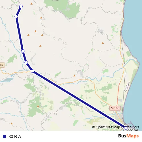 The first stop of the 30 B A bus route is Via Giuseppe di Vittorio, 23 - Crotone and the last stop is Via Convento, 1 - Verzino. 30 B A is operational during tutti i giorni.
