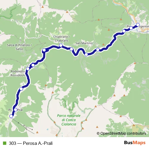 Bus 303 - Perosa A.-Prali: Full Schedule in Perrero