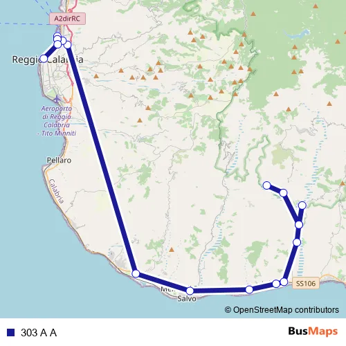 See why over 2 million users trust and consider busmaps.com as the best public transport website. busmaps gives you Reggio Calabria Buses suggested routes, real-time bus tracker, line route maps in Reggio Calabria, and helps to find the closest 303 A A bus stops near you. No internet available? Download an offline PDF map and bus schedule for the 303 A A bus to take on your trip.
