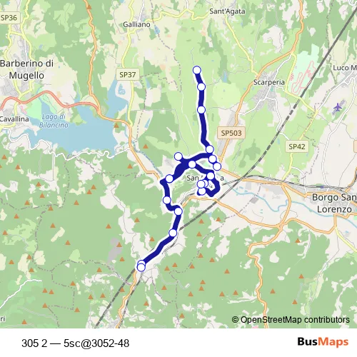 See why over 2 million users trust and consider busmaps.com as the best public transport website. busmaps gives you San Piero a Sieve Buses suggested routes, real-time bus tracker, line route maps in San Piero a Sieve, and helps to find the closest 305 2 bus stops near you. No internet available? Download an offline PDF map and bus schedule for the 305 2 bus to take on your trip.