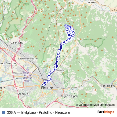 Bus 306 A - Bivigliano - Pratolino - Firenze E: Full Schedule in Florence