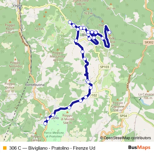 Click here to view the nearest 306 C - Bivigliano - Pratolino - Firenze Ud bus stop.