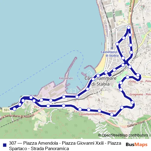 See why over 2 million users trust and consider busmaps.com as the best public transport website. busmaps gives you Castellammare di Stabia Buses suggested routes, real-time bus tracker, line route maps in Castellammare di Stabia, and helps to find the closest 307 bus stops near you. No internet available? Download an offline PDF map and bus schedule for the 307 bus to take on your trip.