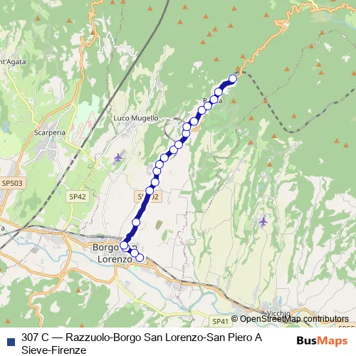 See why over 2 million users trust and consider busmaps.com as the best public transport website. busmaps gives you Borgo San Lorenzo Buses suggested routes, real-time bus tracker, line route maps in Borgo San Lorenzo, and helps to find the closest 307 C bus stops near you. No internet available? Download an offline PDF map and bus schedule for the 307 C bus to take on your trip.