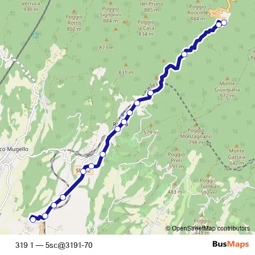 The first stop of the 319 1 bus route is Panicaglia Scuole and the last stop is Razzuolo. 319 1 (5sc@3191-70) is operational during nei giorni feriali.