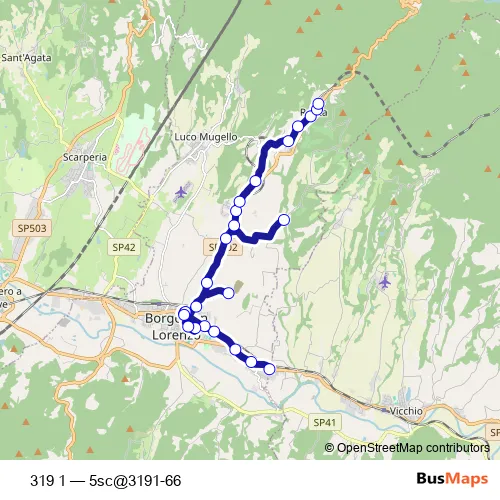 See why over 2 million users trust and consider busmaps.com as the best public transport website. busmaps gives you Borgo San Lorenzo Buses suggested routes, real-time bus tracker, line route maps in Borgo San Lorenzo, and helps to find the closest 319 1 bus stops near you. No internet available? Download an offline PDF map and bus schedule for the 319 1 bus to take on your trip.
