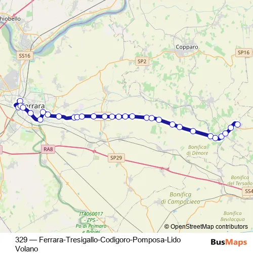 Bus 329 - Ferrara-Tresigallo-Codigoro-Pomposa-Lido Volano in Codigoro: Stops & Timetable