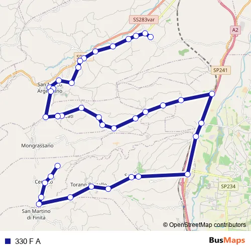 See why over 2 million users trust and consider busmaps.com as the best public transport website. busmaps gives you San Marco Argentano Buses suggested routes, real-time bus tracker, line route maps in San Marco Argentano, and helps to find the closest 330 F A bus stops near you. No internet available? Download an offline PDF map and bus schedule for the 330 F A bus to take on your trip.