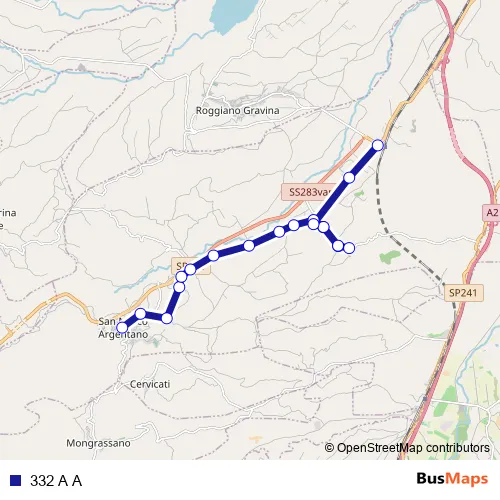 See why over 2 million users trust and consider busmaps.com as the best public transport website. busmaps gives you San Marco Argentano Buses suggested routes, real-time bus tracker, line route maps in San Marco Argentano, and helps to find the closest 332 A A bus stops near you. No internet available? Download an offline PDF map and bus schedule for the 332 A A bus to take on your trip.