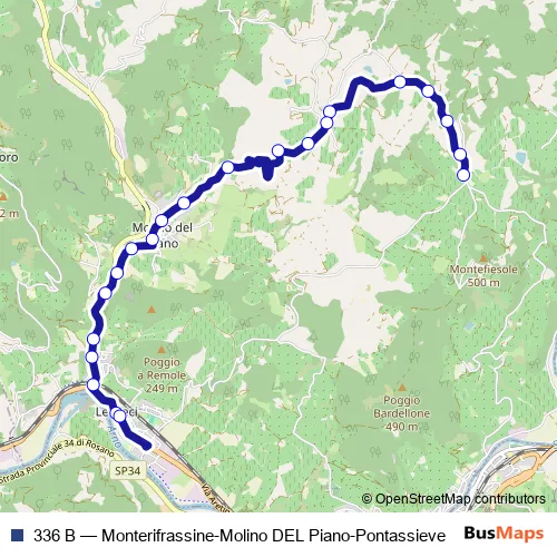 Click here to view the nearest 336 B - Monterifrassine-Molino DEL Piano-Pontassieve bus stop.