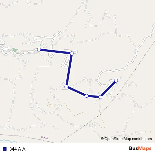 The first stop of the 344 A A bus route is Strada Provinciale 247, 28 - Rose and the last stop is Strada Provinciale 247, 6 - Rose. 344 A A is operational during tutti i giorni.