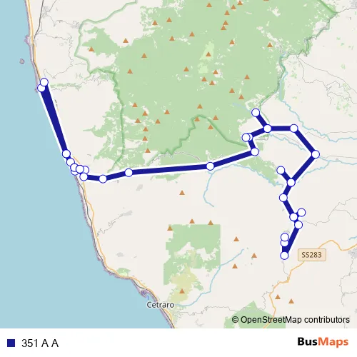 See why over 2 million users trust and consider busmaps.com as the best public transport website. busmaps gives you Belvedere Marittimo Buses suggested routes, real-time bus tracker, line route maps in Belvedere Marittimo, and helps to find the closest 351 A A bus stops near you. No internet available? Download an offline PDF map and bus schedule for the 351 A A bus to take on your trip.