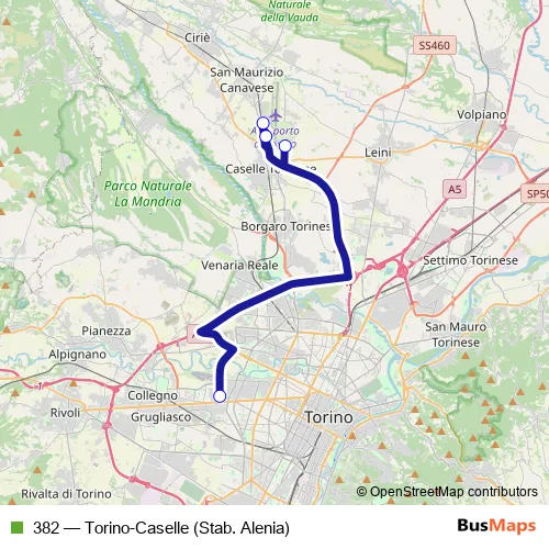 Bus 382 - Torino-Caselle (Stab. Alenia) in Turin: Stops & Timetable