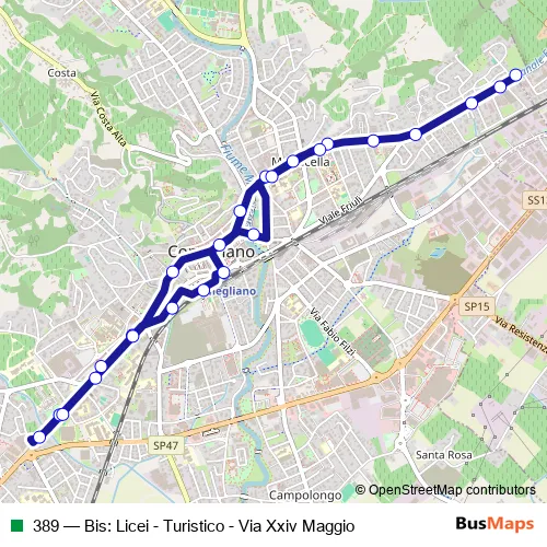 See why over 2 million users trust and consider busmaps.com as the best public transport website. busmaps gives you Conegliano Buses suggested routes, real-time bus tracker, line route maps in Conegliano, and helps to find the closest 389 bus stops near you. No internet available? Download an offline PDF map and bus schedule for the 389 bus to take on your trip.