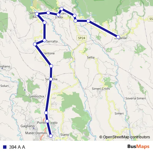 The first stop of the 394 A A bus route is Corso Domenico Olivo, 27 - Magisano and the last stop is Via Piave - Catanzaro. 394 A A is operational during tutti i giorni.