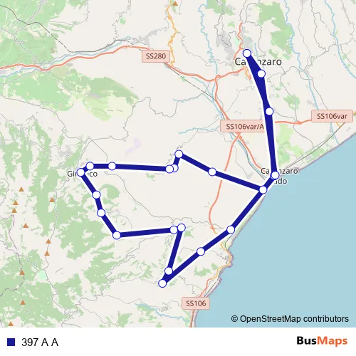 See why over 2 million users trust and consider busmaps.com as the best public transport website. busmaps gives you Catanzaro Buses suggested routes, real-time bus tracker, line route maps in Catanzaro, and helps to find the closest 397 A A bus stops near you. No internet available? Download an offline PDF map and bus schedule for the 397 A A bus to take on your trip.