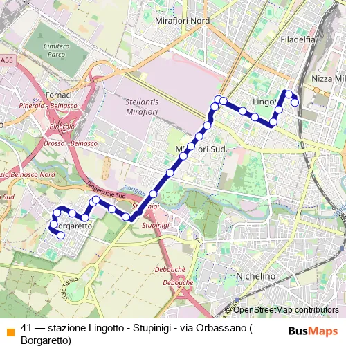 Click here to view the nearest 41 - stazione Lingotto - Stupinigi - via Orbassano (Borgaretto) bus stop.