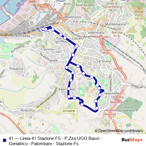 Bus 41 - Linea 41 Stazione FS - P.Zza UGO Bassi - Geriatrico - Palombare - Stazione Fs in Ancona: Stops & Timetable