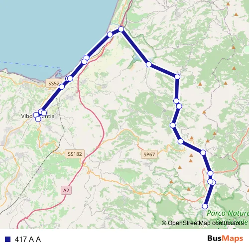 See why over 2 million users trust and consider busmaps.com as the best public transport website. busmaps gives you Vibo Valentia Buses suggested routes, real-time bus tracker, line route maps in Vibo Valentia, and helps to find the closest 417 A A bus stops near you. No internet available? Download an offline PDF map and bus schedule for the 417 A A bus to take on your trip.