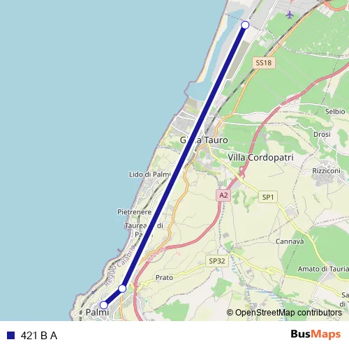 See why over 2 million users trust and consider busmaps.com as the best public transport website. busmaps gives you Palmi Buses suggested routes, real-time bus tracker, line route maps in Palmi, and helps to find the closest 421 B A bus stops near you. No internet available? Download an offline PDF map and bus schedule for the 421 B A bus to take on your trip.