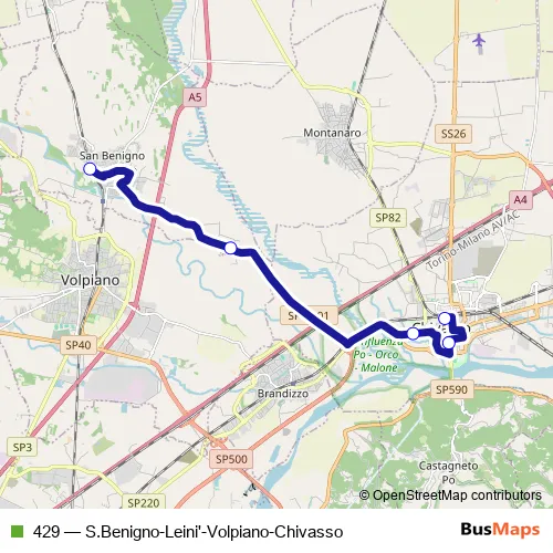 Bus 429 - S.Benigno-Leini'-Volpiano-Chivasso in Chivasso: Stops & Timetable