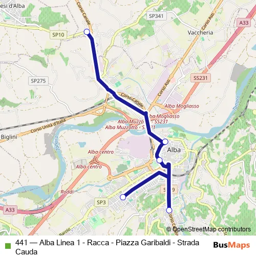Click here to view the nearest 441 - Alba Linea 1 - Racca - Piazza Garibaldi - Strada Cauda bus stop.