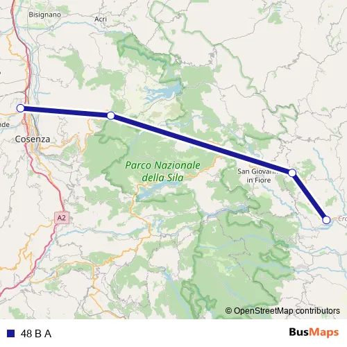 The first stop of the 48 B A bus route is Strada Provinciale 31, 12 - Caccuri and the last stop is Università della Calabria - Arcavacata - Rende. 48 B A is operational during tutti i giorni.