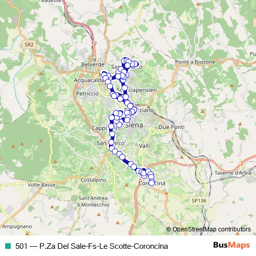 Bus 501 - P.Za Del Sale-Fs-Le Scotte-Coroncina in Siena: Stops & Timetable