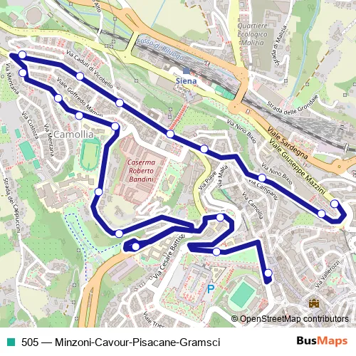 Bus 505 - Minzoni-Cavour-Pisacane-Gramsci: Full Schedule in Siena