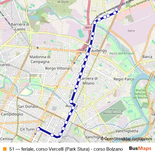 Bus 51 - feriale, corso Vercelli (Park Stura) - corso Bolzano Schedule in Turin
