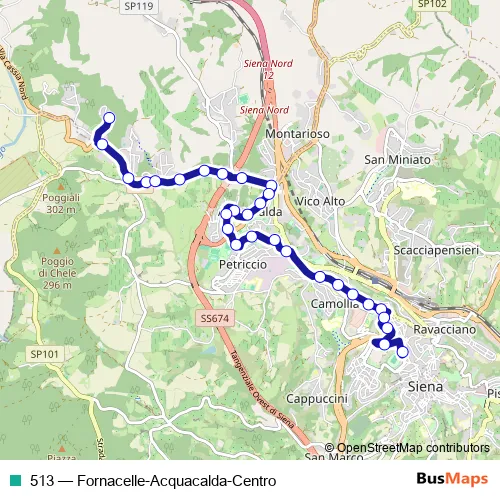 Bus 513 - Fornacelle-Acquacalda-Centro: Full Schedule in Siena