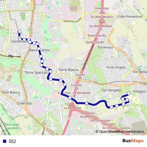 See why over 2 million users trust and consider busmaps.com as the best public transport website. busmaps gives you Rome Buses suggested routes, real-time bus tracker, line route maps in Rome, and helps to find the closest 552 bus stops near you. No internet available? Download an offline PDF map and bus schedule for the 552 bus to take on your trip.