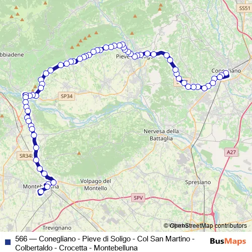 Click here to view the nearest 566 - Conegliano - Pieve di Soligo - Col San Martino - Colbertaldo - Crocetta - Montebelluna bus stop.